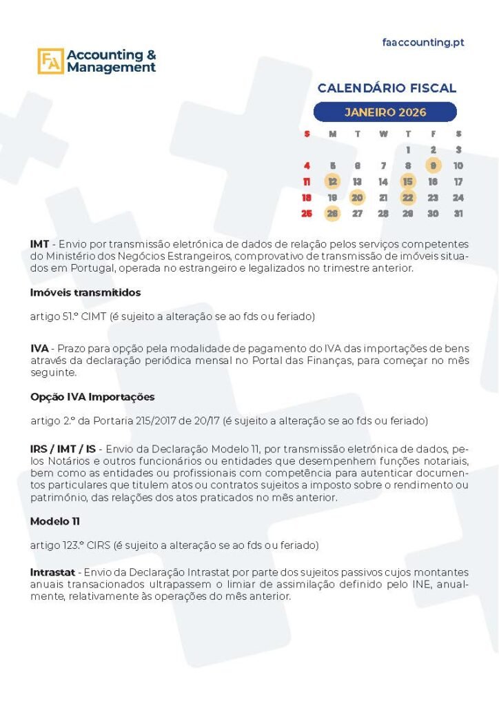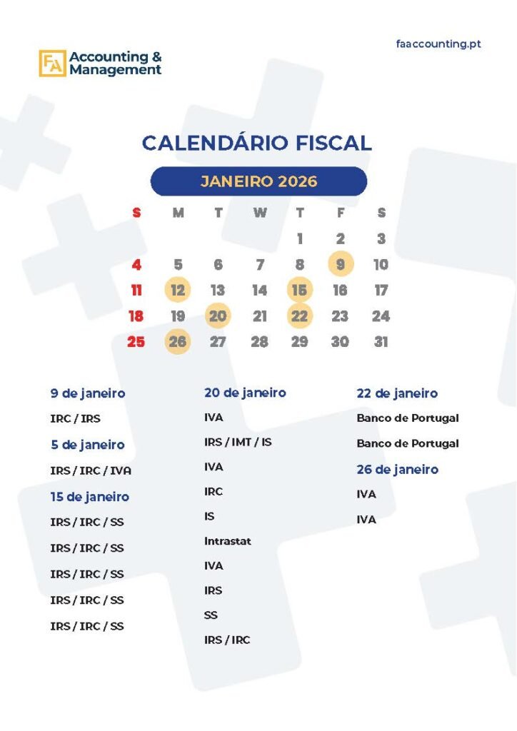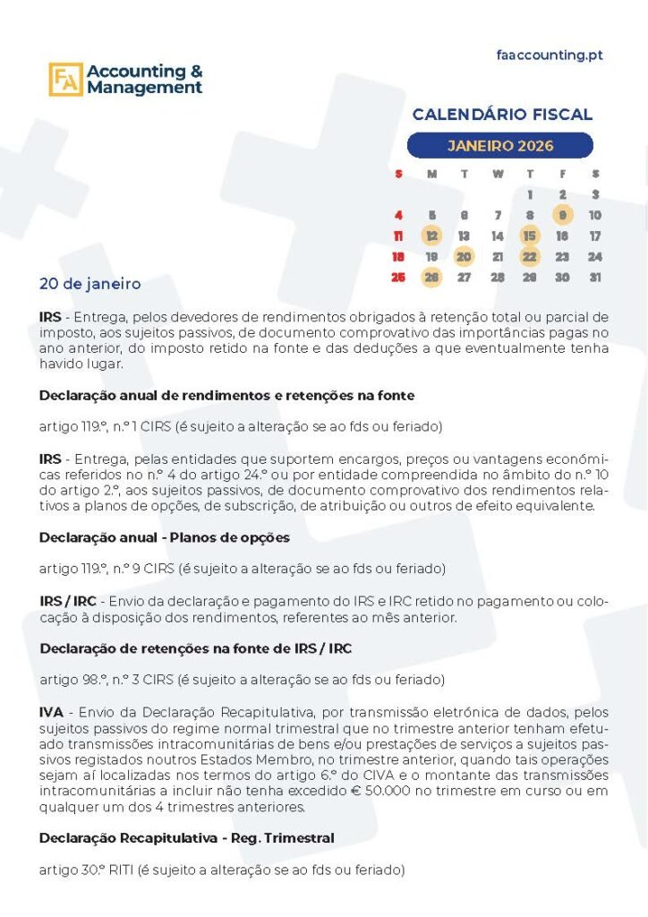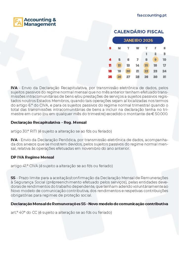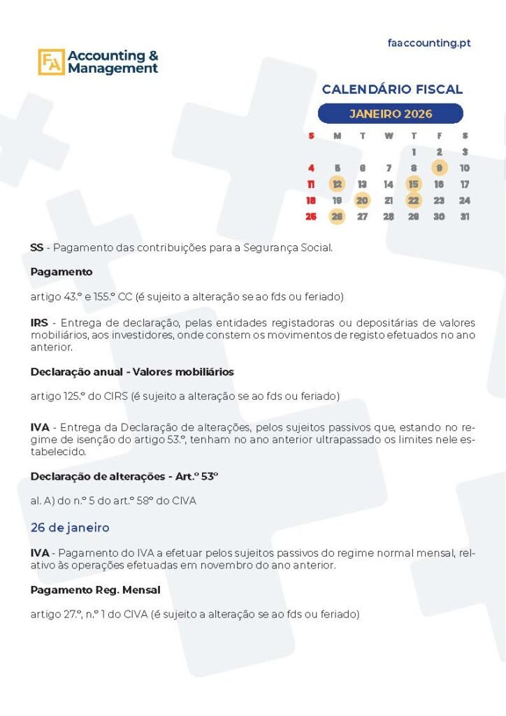 CALENDÁRIO FISCAL – JANEIRO 2026